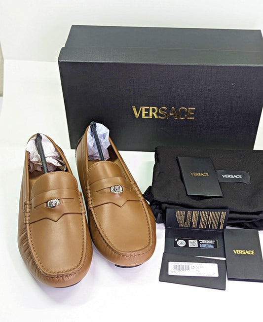 Versace Men's Medusa Coin Biggie Leather Slip On Penny Drivers Size 43 MSRP $775