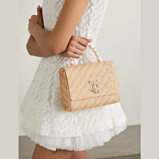 Jimmy Choo Avenue Embellished Woven Raffia Top Handle Shoulder Bag (MSRP $1,650)