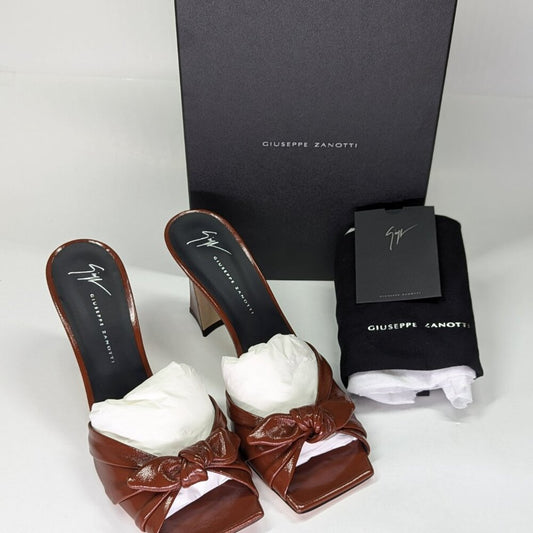 Giuseppe Zanotti Vanilla 85 Knotted Bow Mule Sandals Cacao Size 40 (MSRP $895)