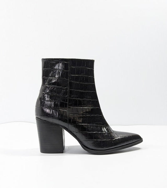 Jaggar Women's Grounded Croc Embossed Black Leather Booties Size 5 (MSRP $208)