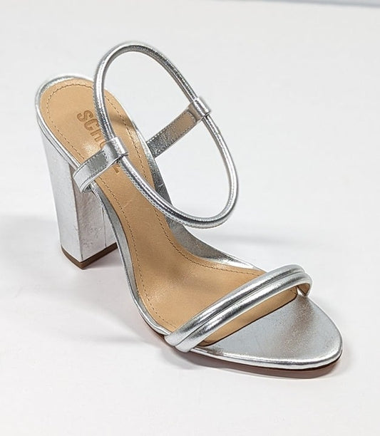 Schutz Women's Pincesa Silver Metallic High-Heel Sandals Size 7.5 B (MSRP $170)