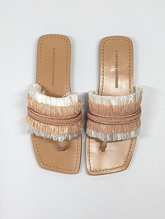 Sigerson Morrison Women's Avis Nude Raffia Thong Sandals Size 7 (MSRP $250)