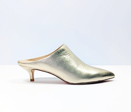 Pour La Victoire Women's Korrine Leather Heel Mules Champagne Size 8 (MSRP $245)