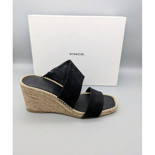VINCE Garlin Women's Black Suede Wedge Espadrille Mules Size 10 M MSRP $295
