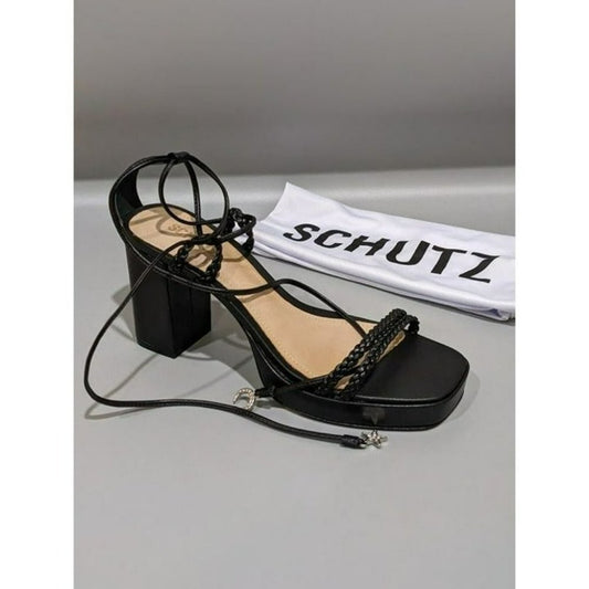 Schutz Lunah Plat Women's Leather Lace-up Sandals Black Color Size 9.5 M