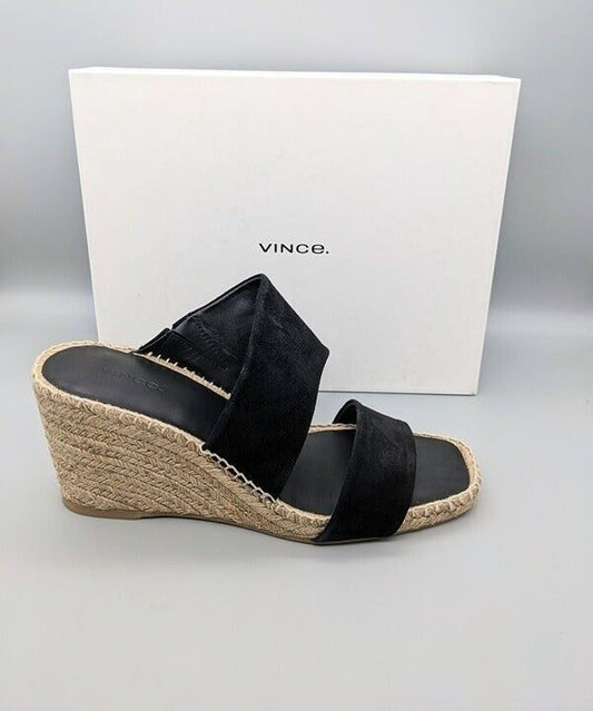 VINCE Garlin Women's Black Suede Wedge Espadrille Mules Size 10 M MSRP $295