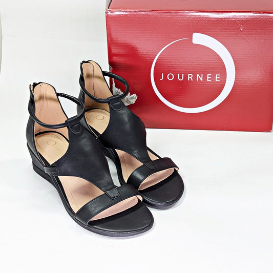 Journee Collection Women's Trayle Black Wedge Sandals Size 8 (MSRP $95)