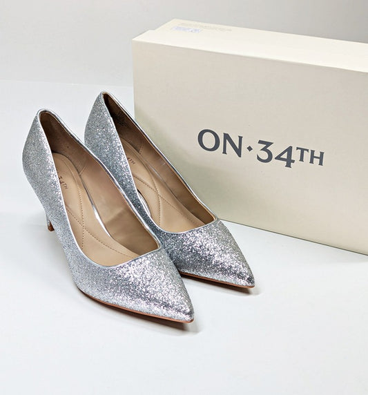 On 34th Women's Jeules Silver Glitter Pointed-Toe Pumps Size 7.5 (MSRP $80)