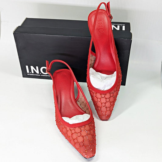 I.N.C. International Concepts Gemini Mid Heel Red Bling Mesh Size 9.5 (MSRP $80)