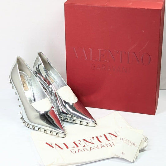 Valentino Garavani Women's Pointed Toe Rockstud Pumps Silver Sz 37.5 MSRP $1,390