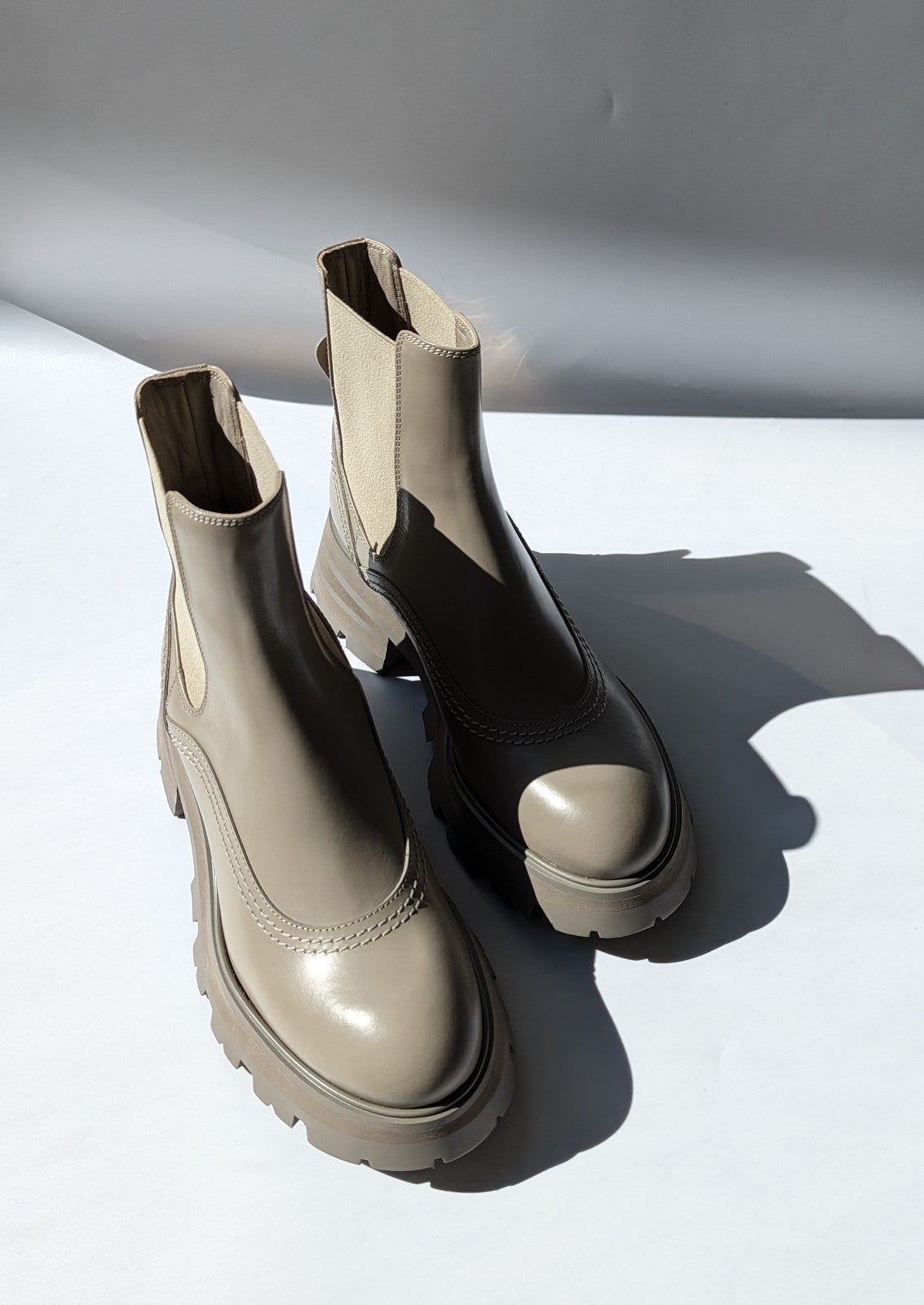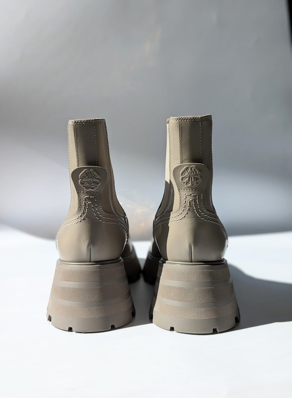 Elevated by a platform-lugged sole, Alexander McQueen's Chelsea boots are crafted of smooth leather with elasticized gussets. This Italian-made pair is finished with a signature embossed seal motif at the back.