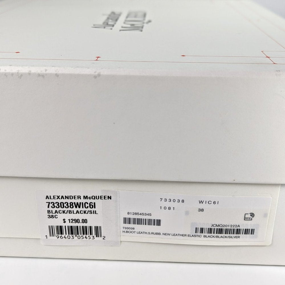 Alexander McQueen Women's Tread Grommet Embellished High Heel Chelsea Boots Black Size 38 EU / 8 US