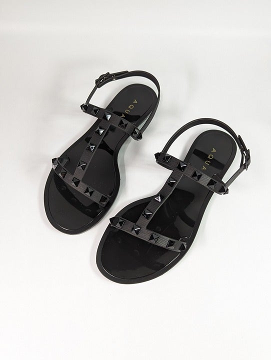 Aqua Sandalia Women's T-Strap Slip On Jelly Sandals Black Size 6 B (MSRP $78)