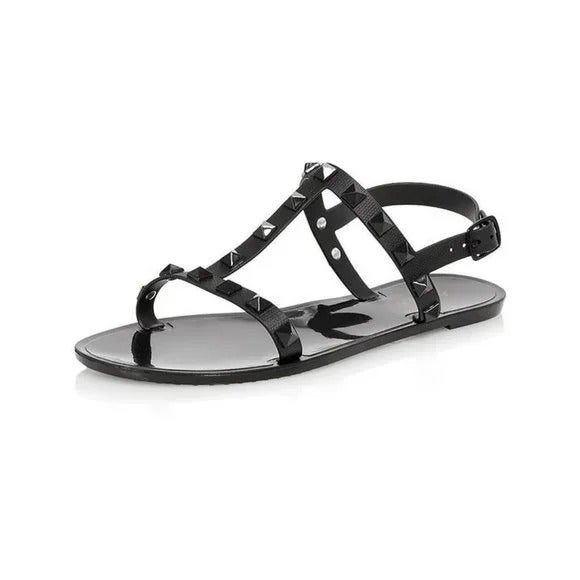 Aqua Sandalia Women's T-Strap Slip On Jelly Sandals Black Size 6 B