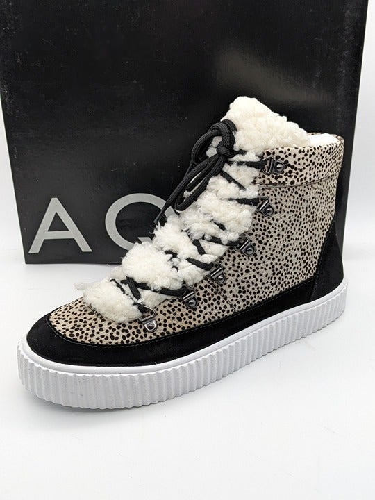 Aqua Women's High Top Tan Faux Fur SHEARLING SNEAKER Shoes Size 8M