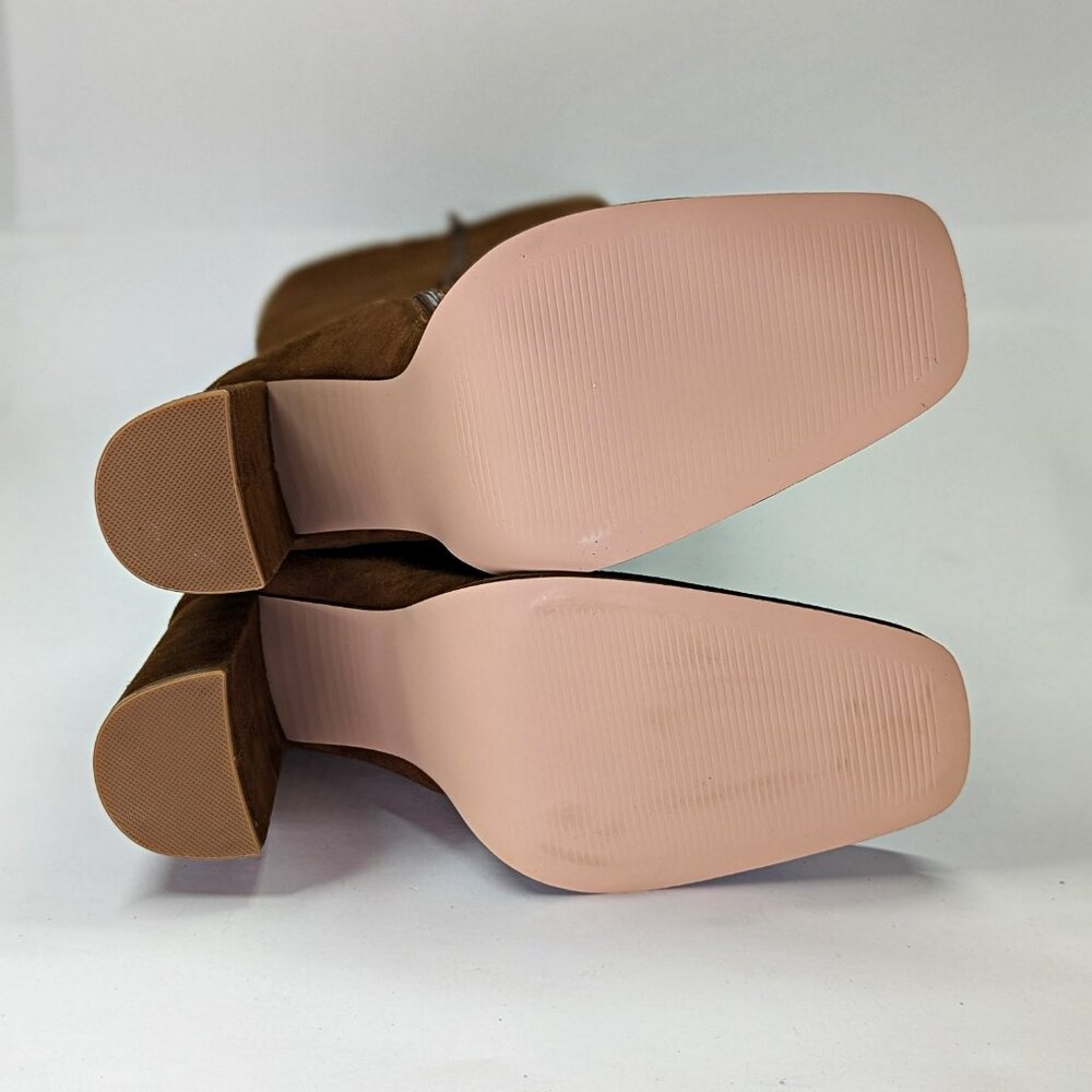 AQUA Women's Leigh Square Toe High Heel Boots Brown Goring Size 9 (MSRP $228)