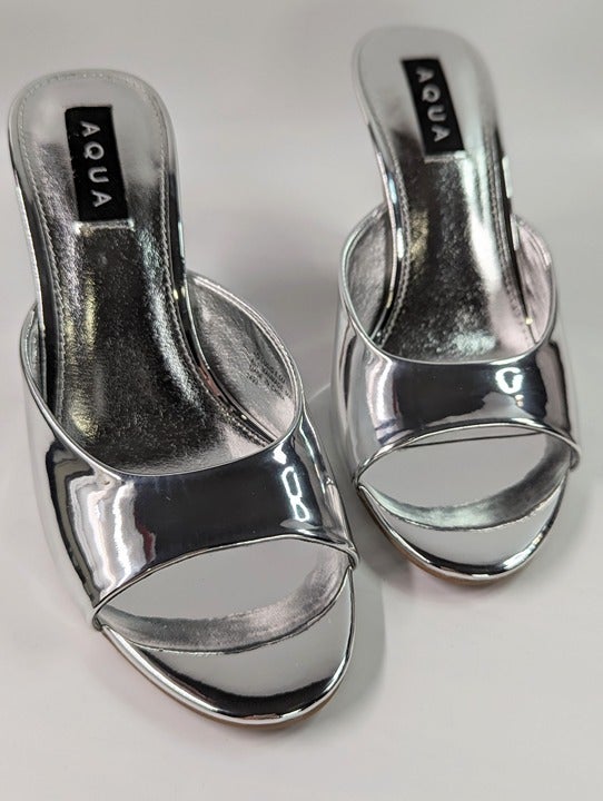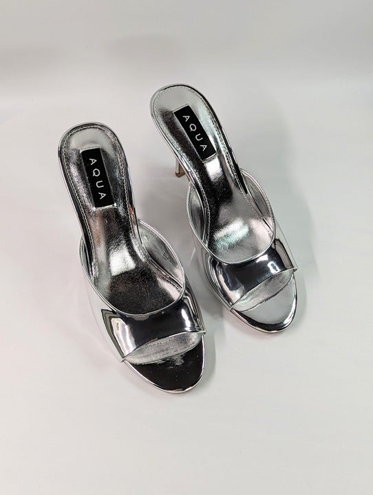 AQUA x Maeve Reilly Women's Lucid High Heel Sandals Silver Size 8.5