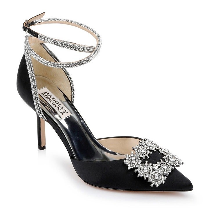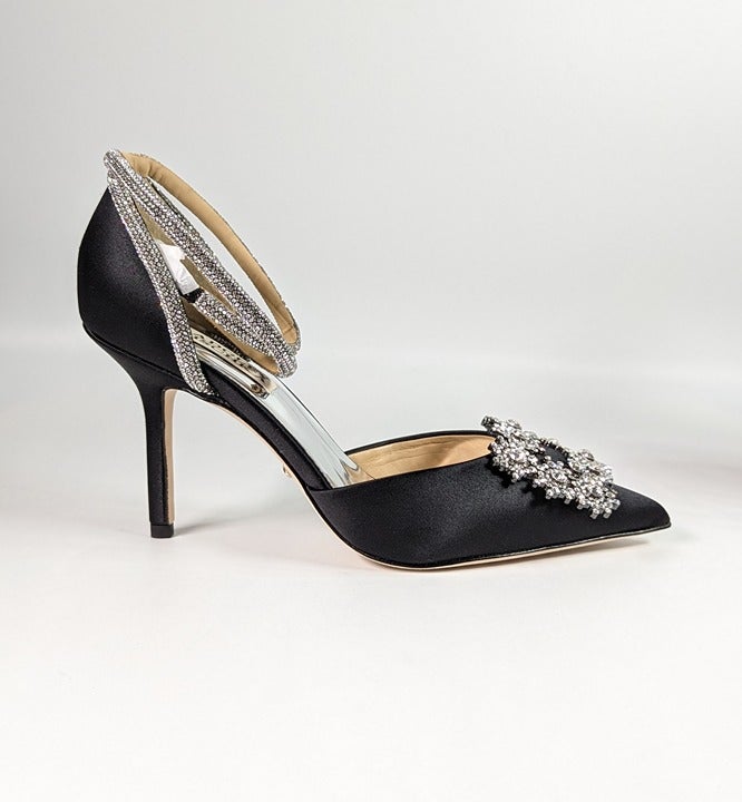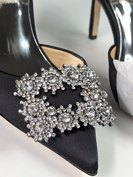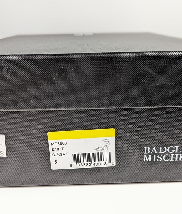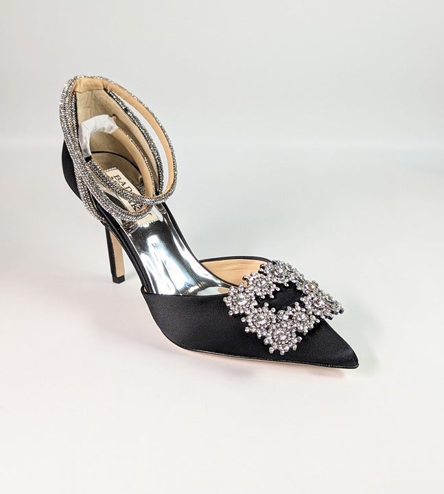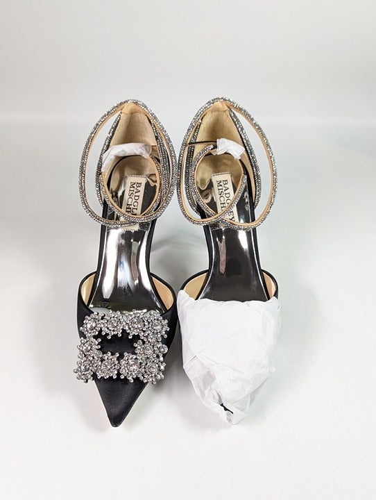 Badgley Mischka Saint Elegant 2 Piece Black Satin Ankle Strap Size 5 (MSRP $248)