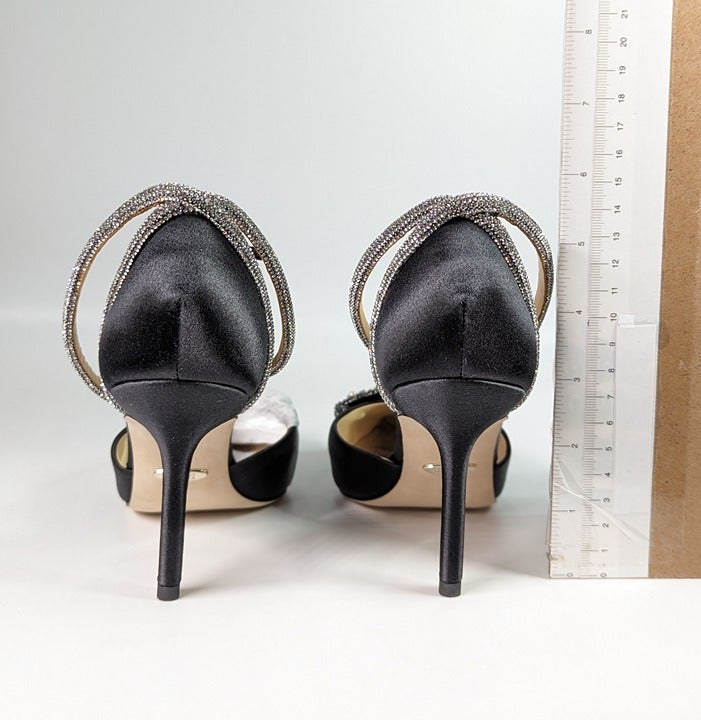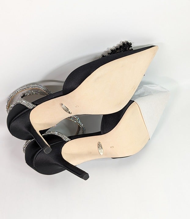 Badgley Mischka Saint Women's Elegant 2 Piece Black Silk Satin Ankle Strap Size 5