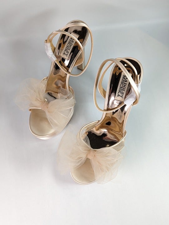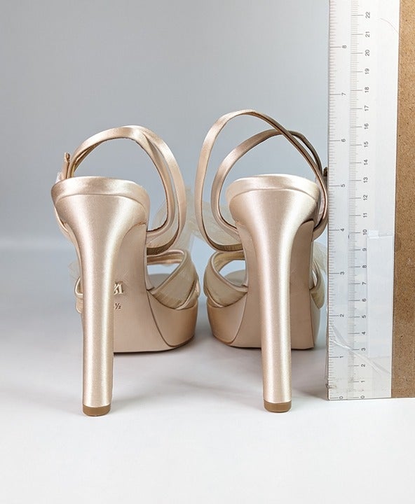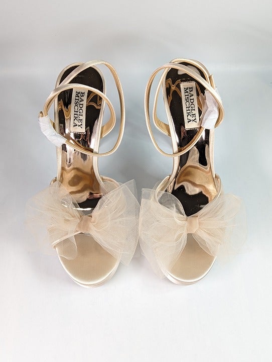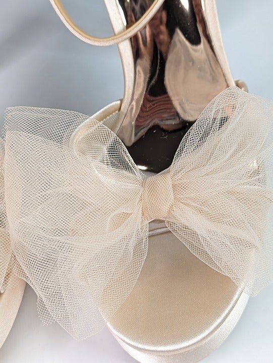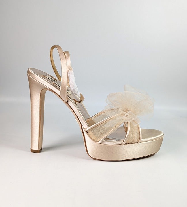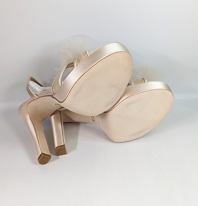 Badgley Mischka Sophie Platform Sandal Tulle Flower Nude Size 8.5 (MSRP $235)