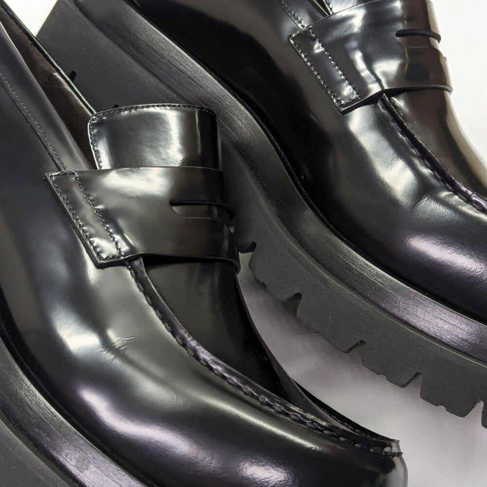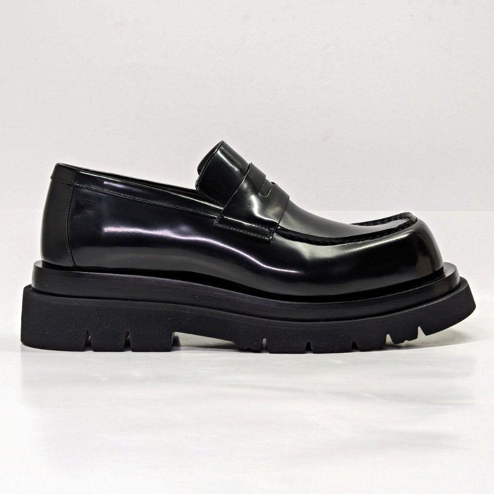 Bottega Veneta Men's Black Leather Slip On Lug Penny Loafers Size 43