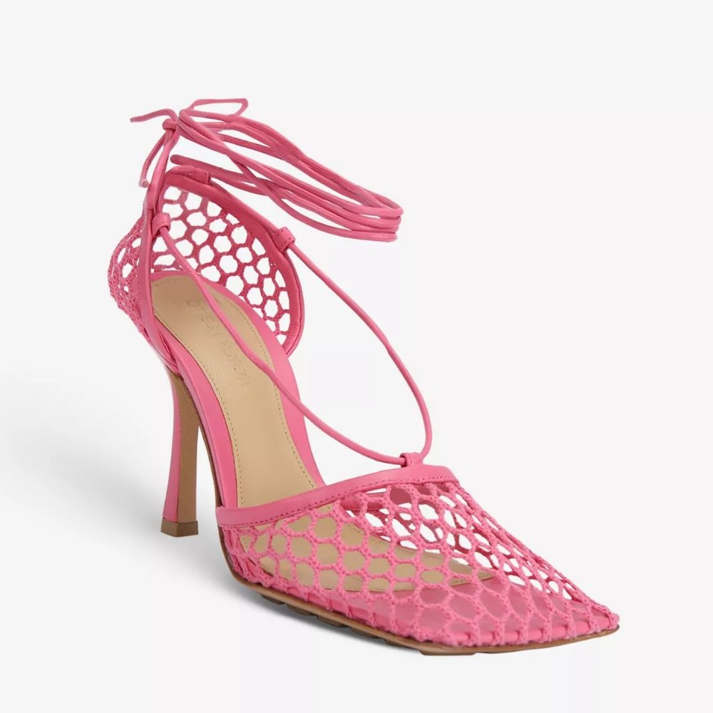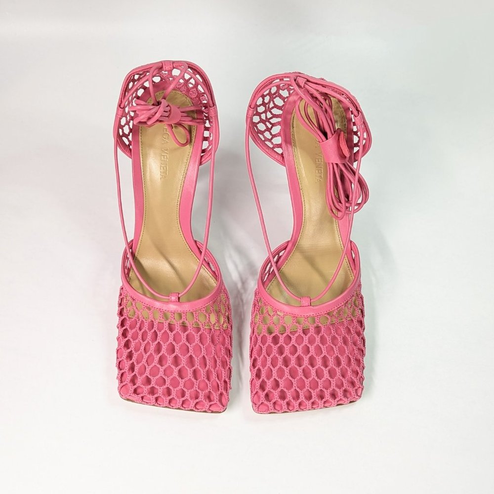 Bottega Veneta Women's Azalea Stretch Mesh Ankle Tie High Heel Sandals Size 41 IT