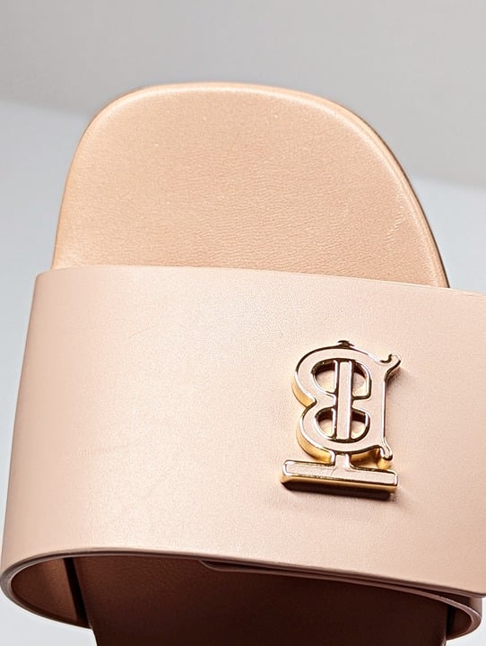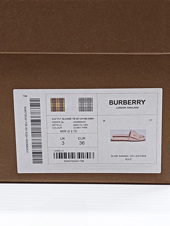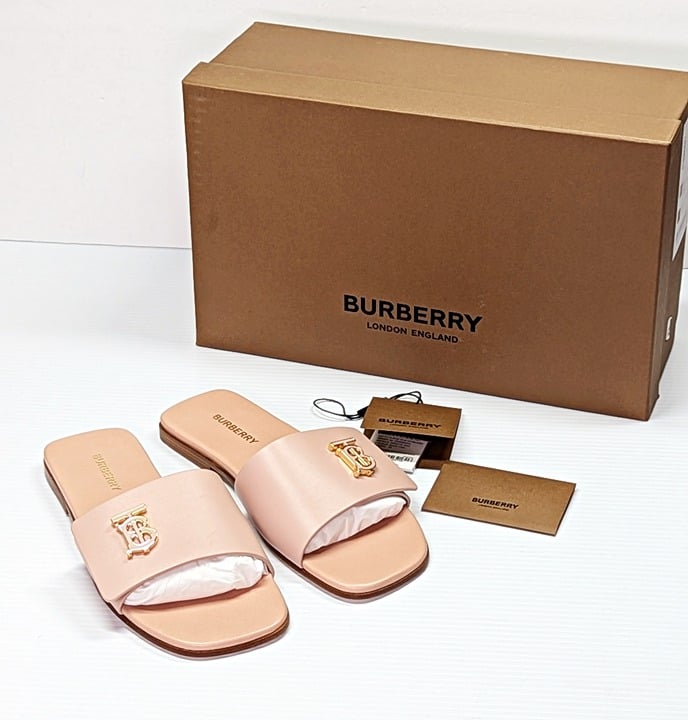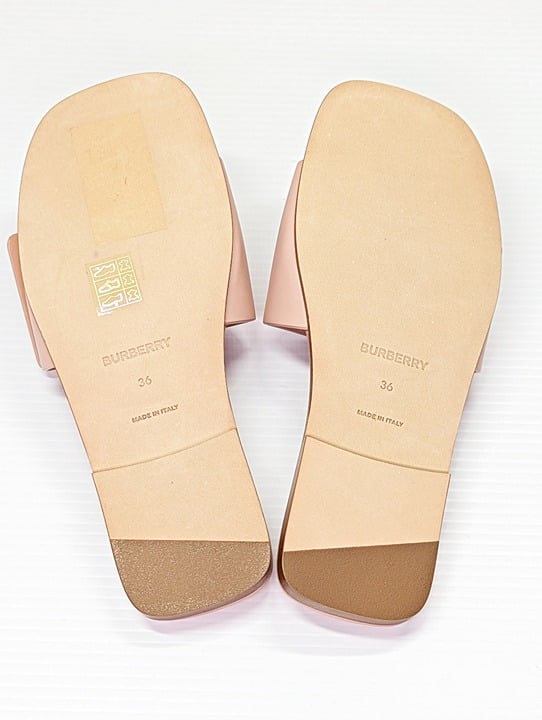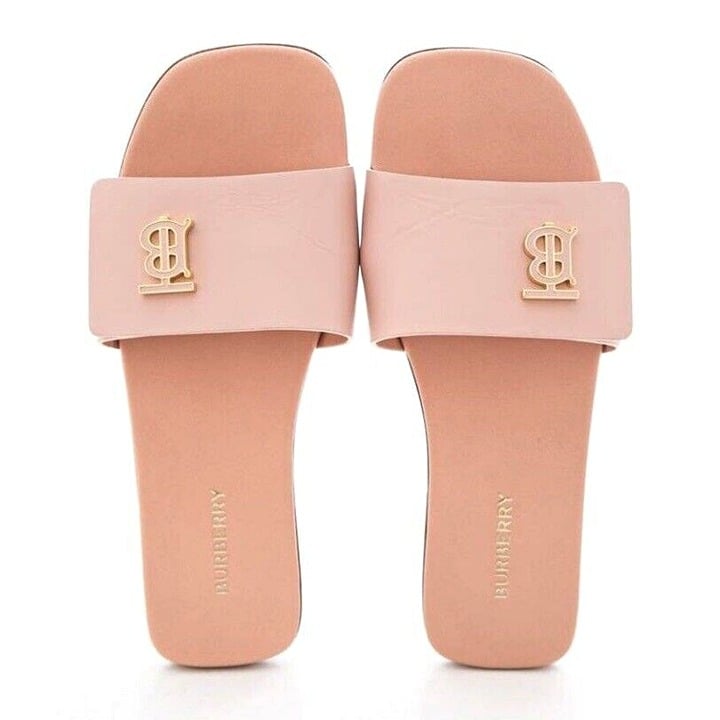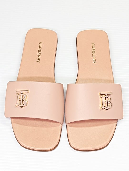 Burberry Women's Sloane TB Leather Flat Sandal Dusky Pink Size 36 IT