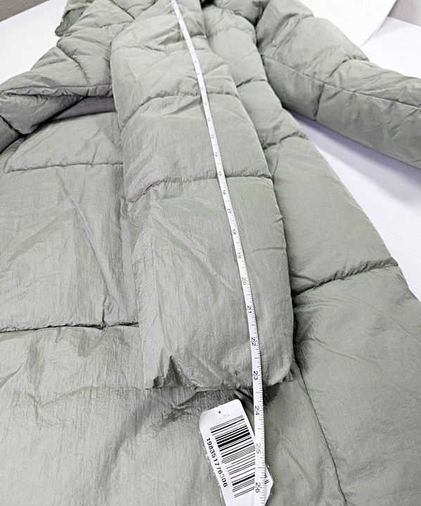 Cole Haan Women's Sage Green Shine Faux-Fur-Collar Hooded Puffer Coat Size M