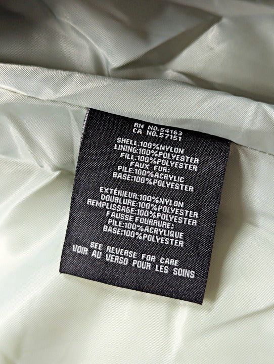 Shell: 100% nylon; lining, faux fur & fill: 100% polyester