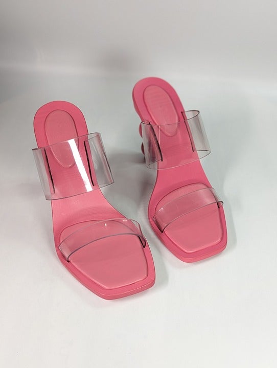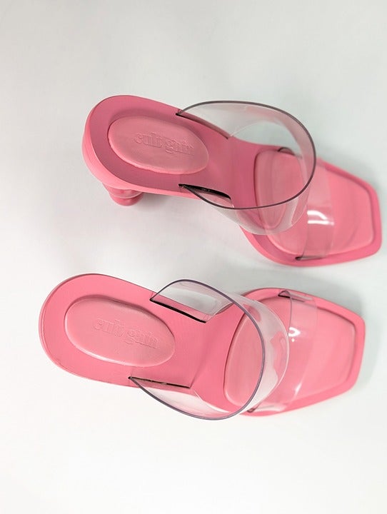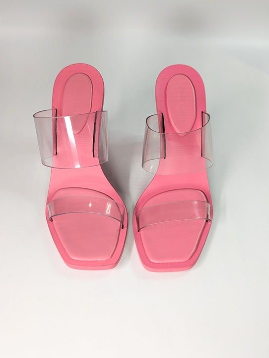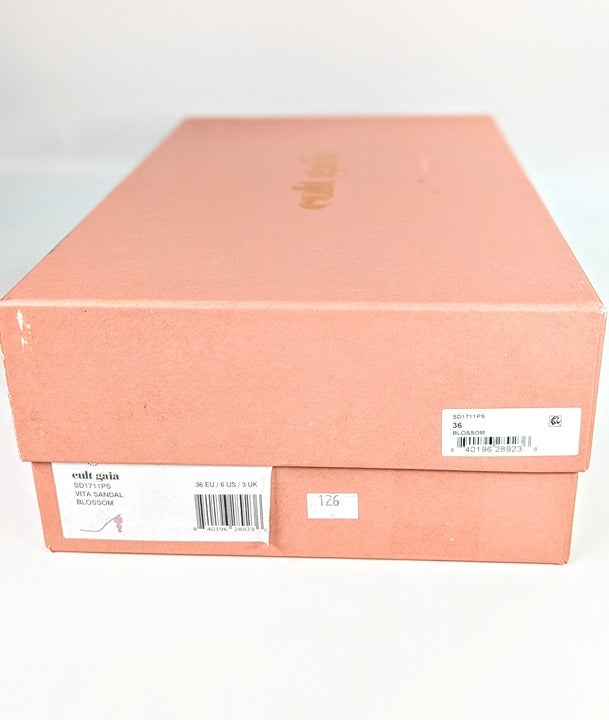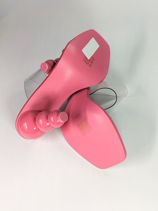 Cult Gaia Women's Vita Vinyl Stacked-Heel Sandals Blossom Size 36 (MSRP $428)