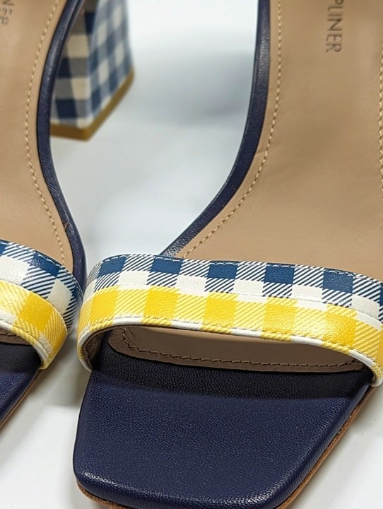 Donald Pliner Women's Watson Gingham-Print Leather Heel Sandal Size 9 MSRP $198