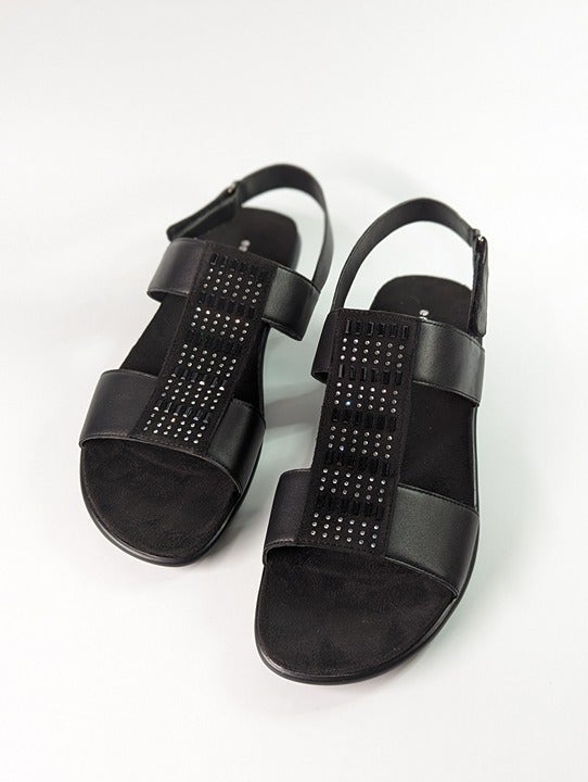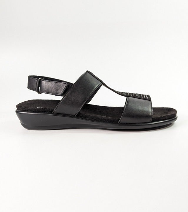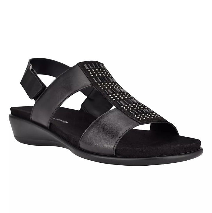 Easy Spirit's Hazel t-strap wedge sandal is perfect for dressing up while staying comfortable. Hazel features rhinestone detailing on the t-strap for a touch of shine. This style also has an adjustable hook and loop closure for ease of fit and comfort.