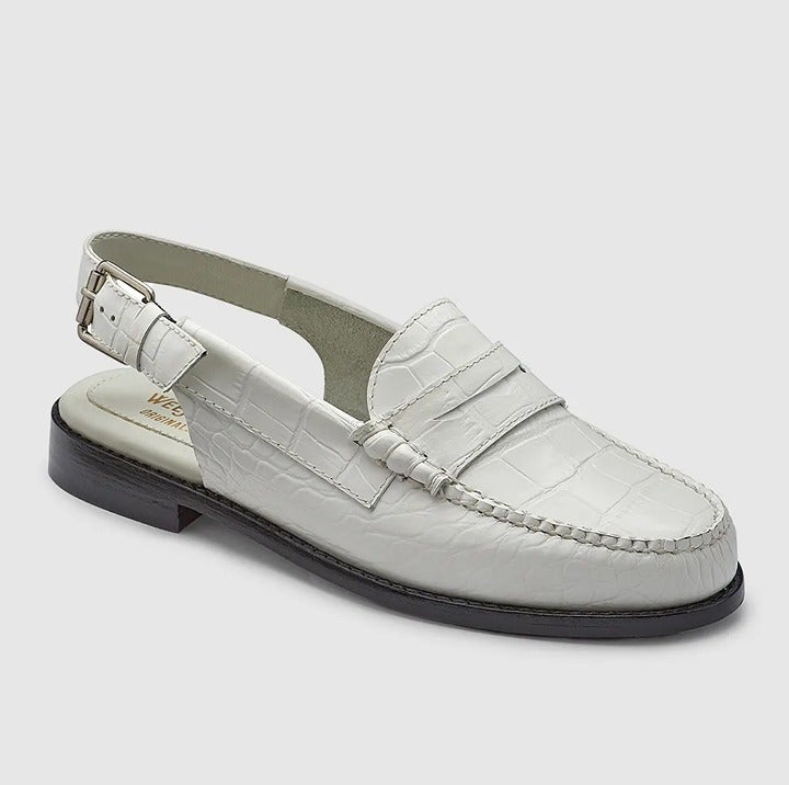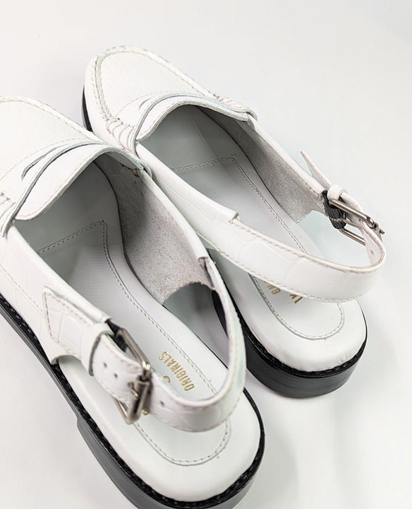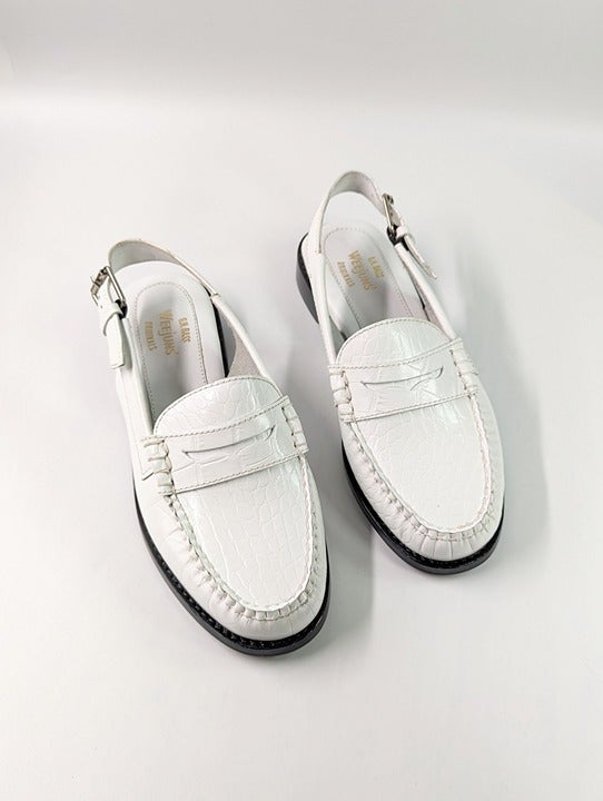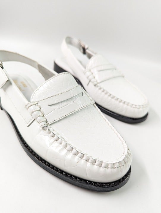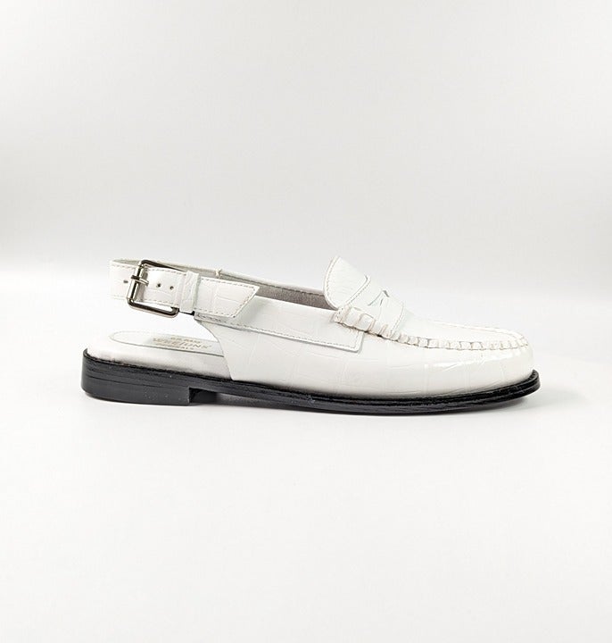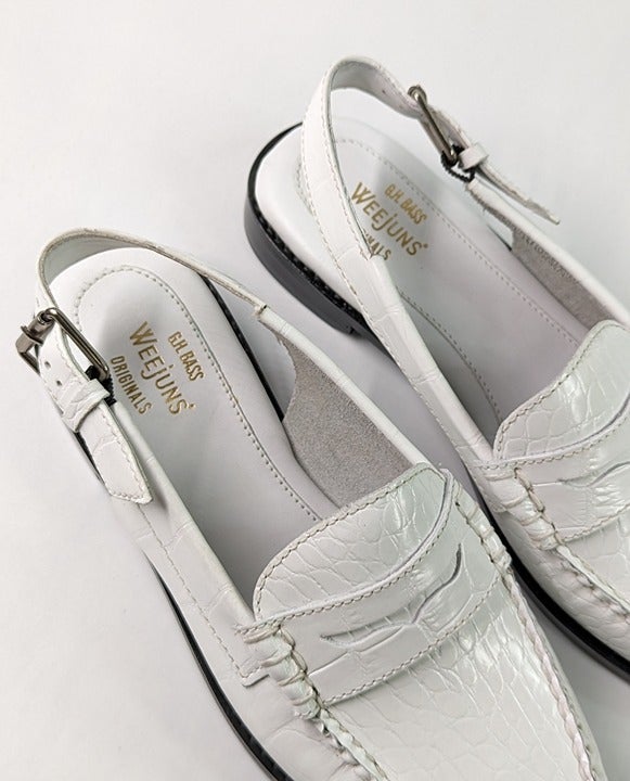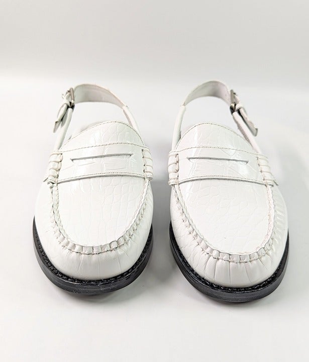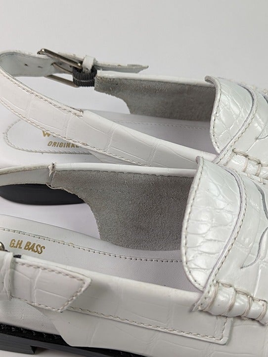 G.H. Bass Women's Whitney Bax White Croc Embossed Slingback Flats Size 7.5