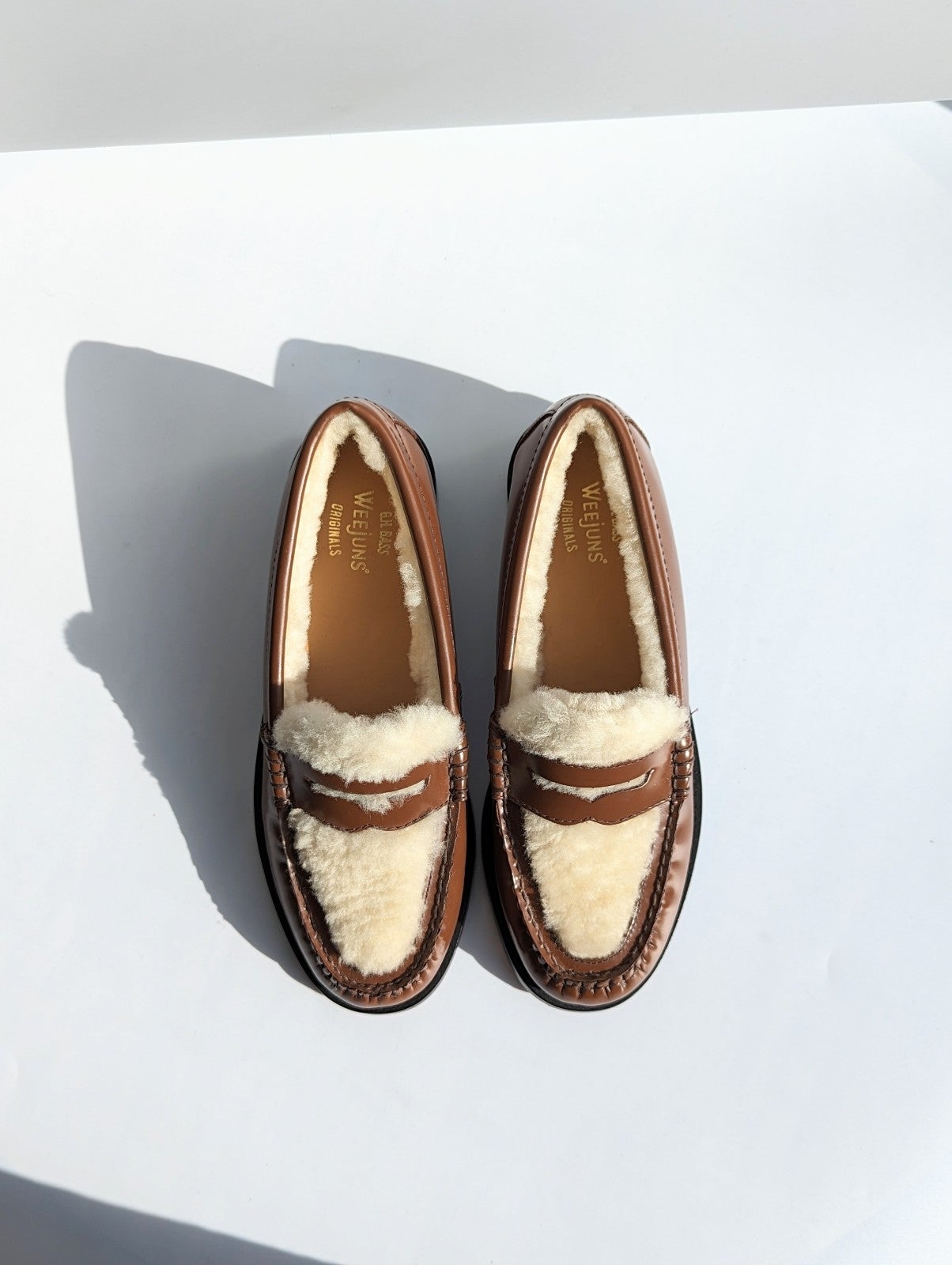 G.H.BASS Weejuns Women's Whitney Shearling Loafers Whiskey Brown Size US 6