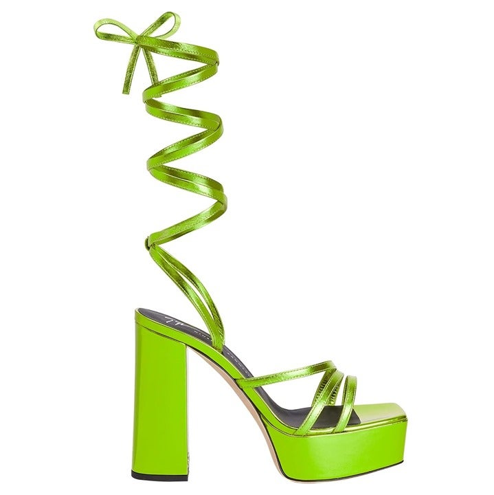 Giuseppe Zanotti's Blasvegas sandals are elevated by a chunky platform and block heel. Crafted of gleaming metallic leather in Italy, this pair is styled with a strappy vamp and matching lace-up leg ties