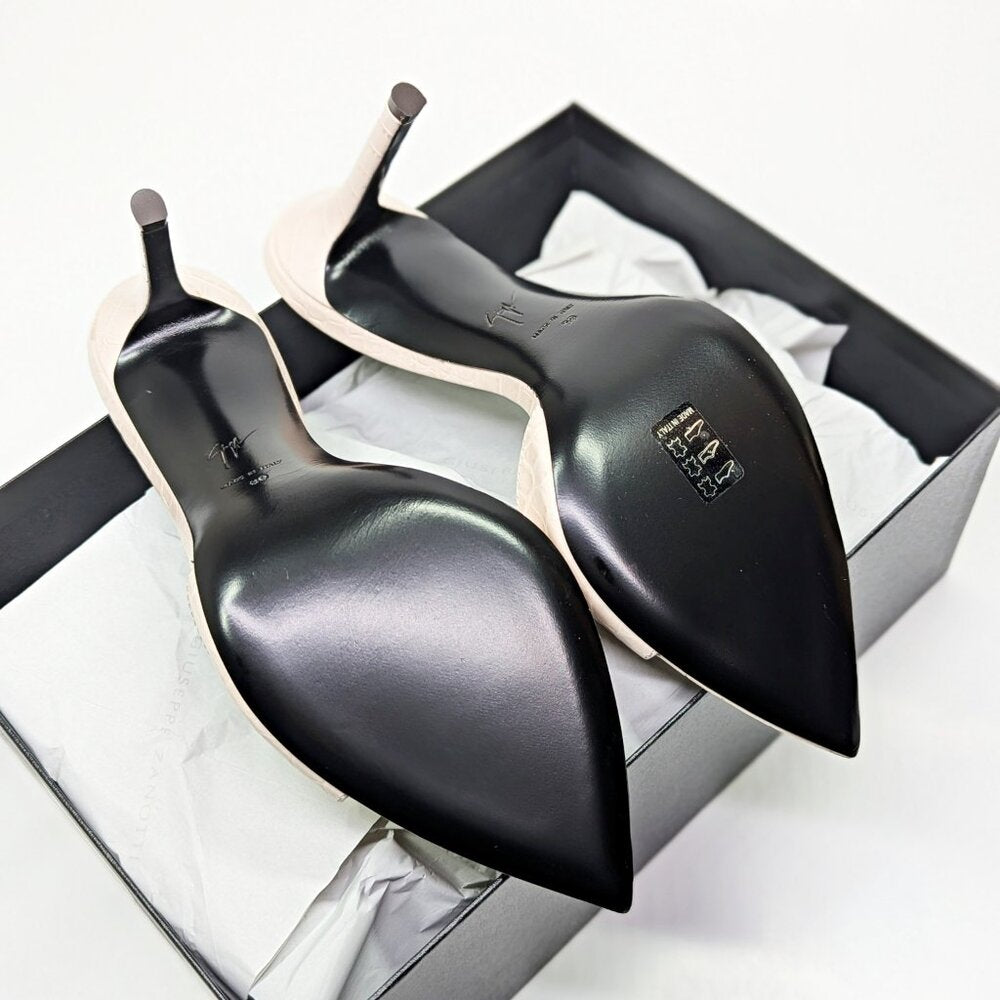 Giuseppe Zanotti Intrigo 90mm Crocodile-Print Beige Mule Sandals Size 39