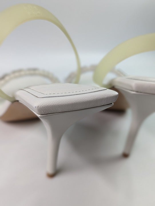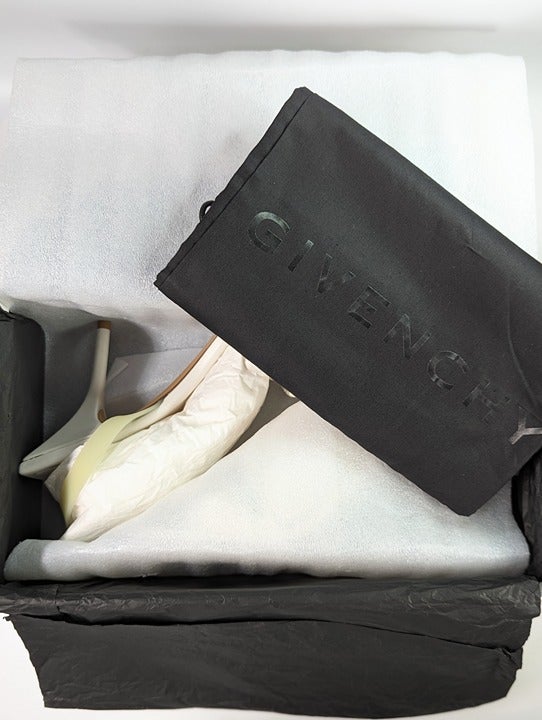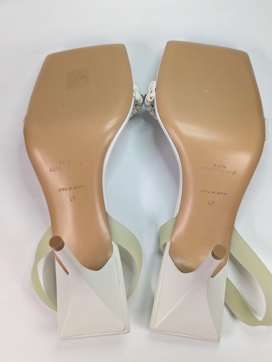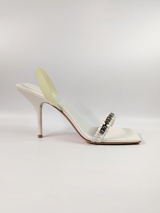 Givenchy Women's Chain Embellished G Woven Ivory Leather 90mm Heel Sandals Size 41