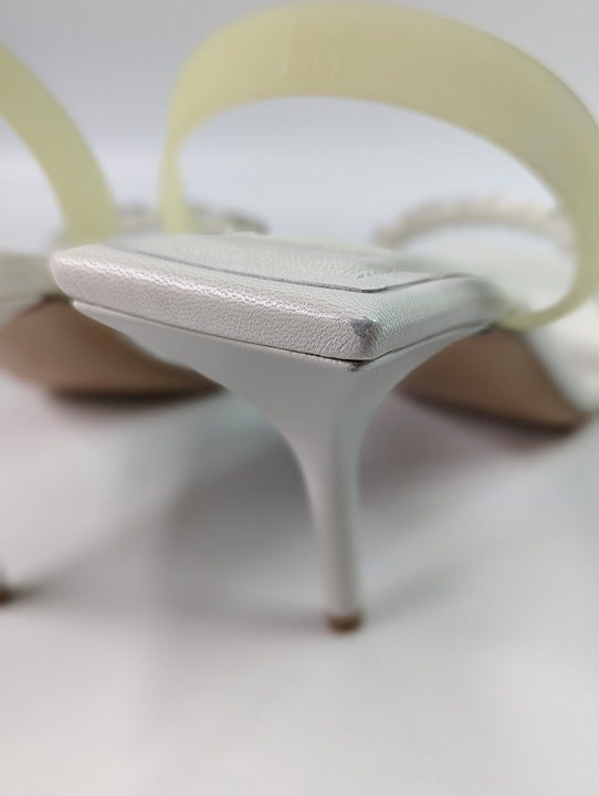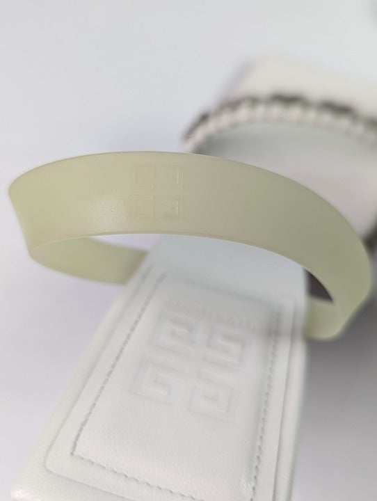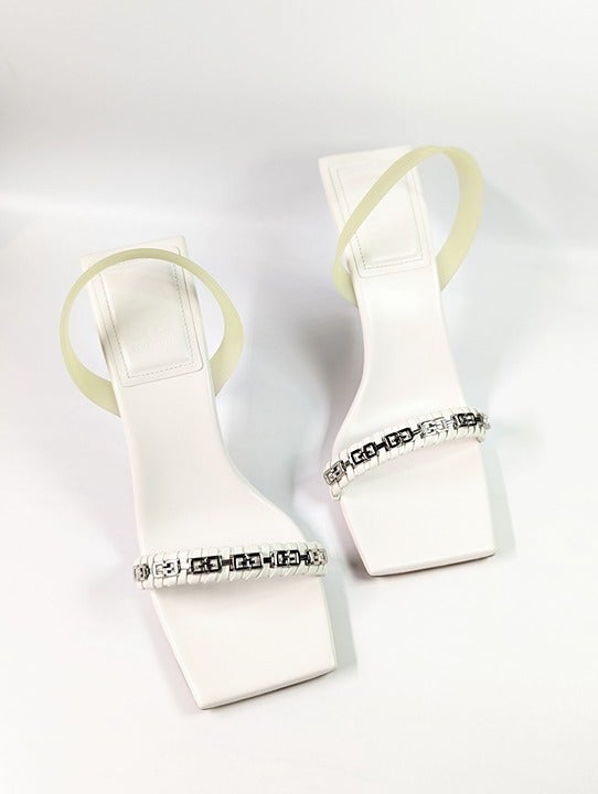 Givenchy Chain Embellished G Woven Ivory Leather Heel Sandals Size 41 MSRP $925