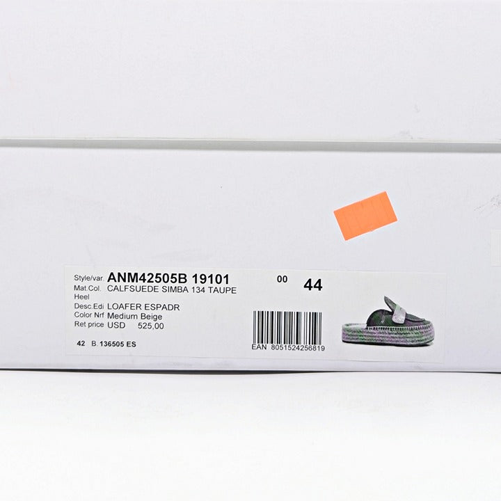 J.W. Anderson Men's Suede and Jute Espadrille Loafers Size 44