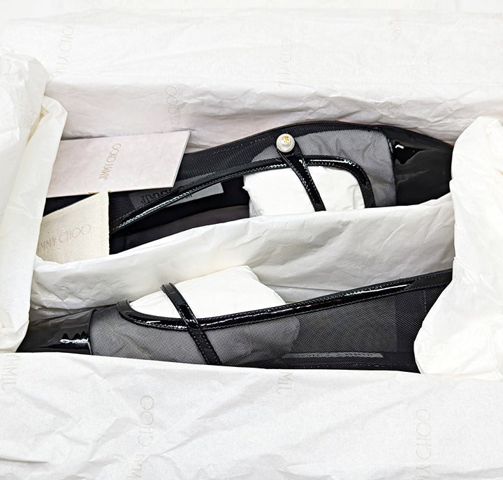 Jimmy Choo Elisa Women's Ballet Flats Patent and Mesh Black Size 38