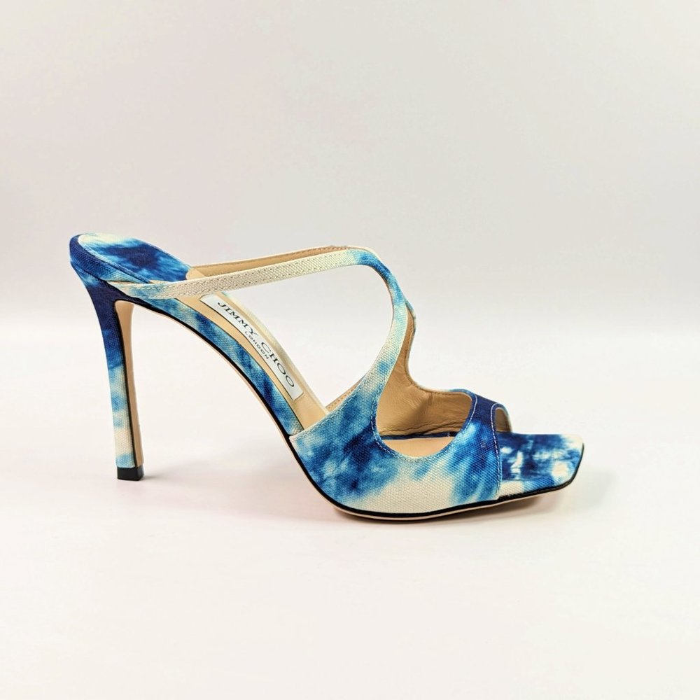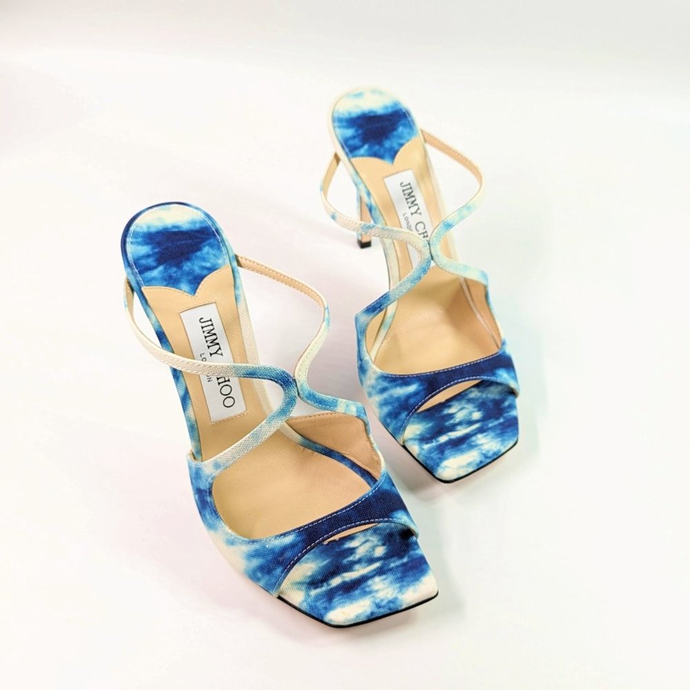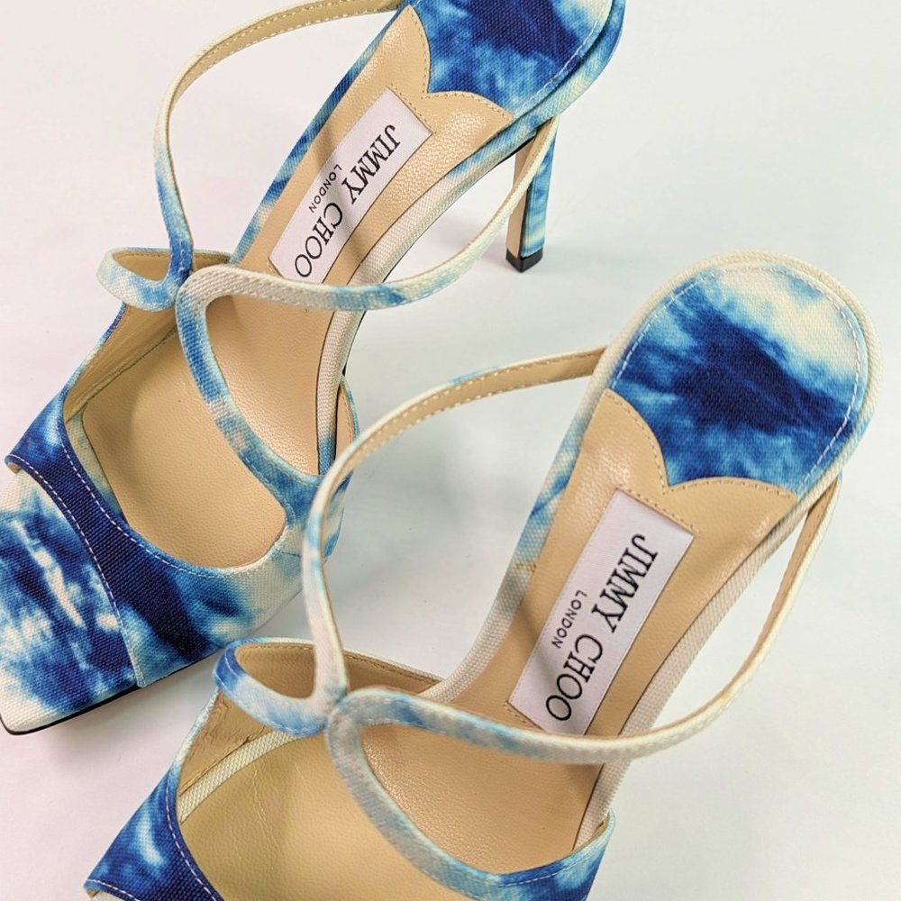 Exuding classic Jimmy Choo elegance, these sandals are finished with a dappled blue and white upper. They are finished with an open toe and a slim heel for an sophisticated aesthetic.