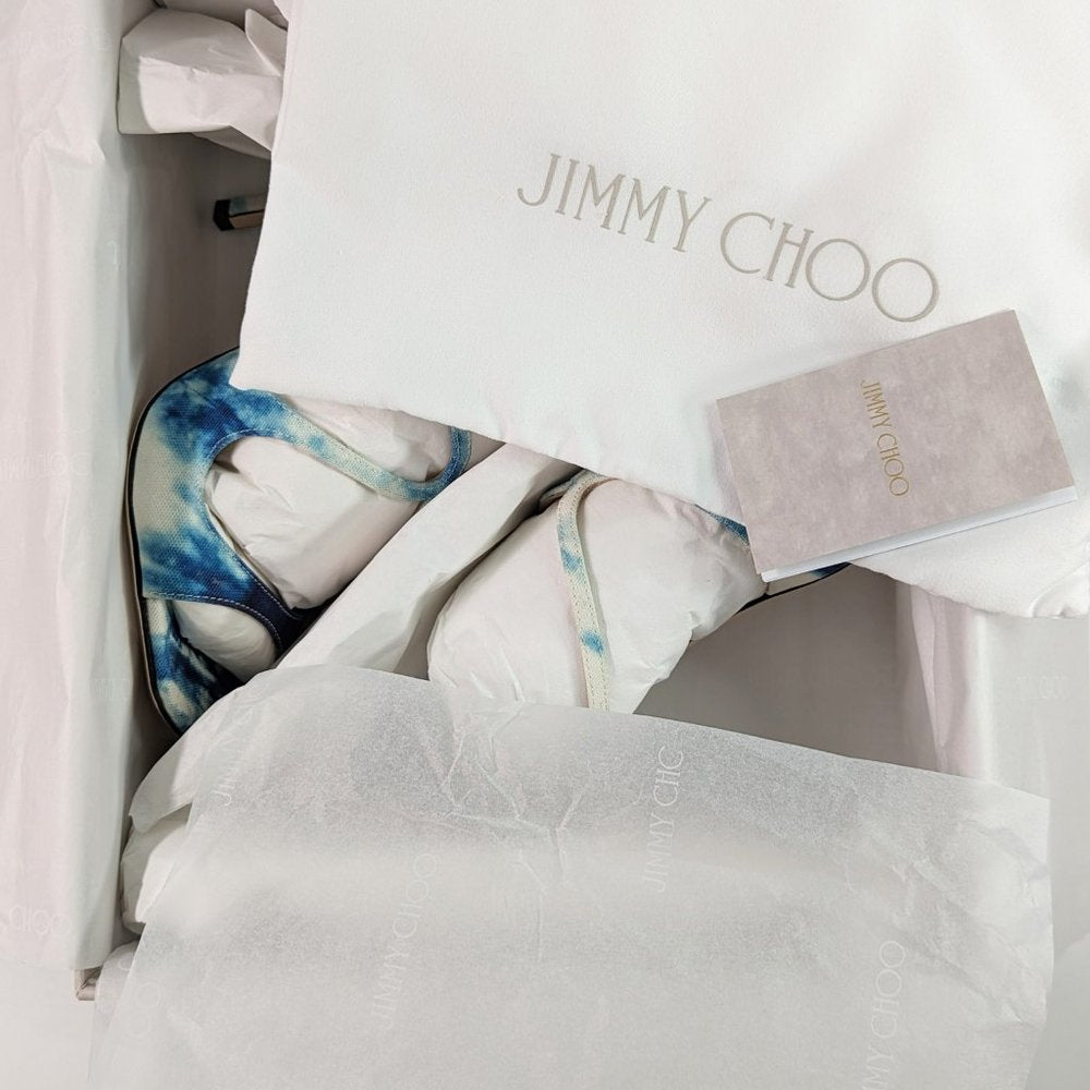 Jimmy Choo Women's Anise 95 High Heel Sandals in Marbled Denim Size 37.5 EU