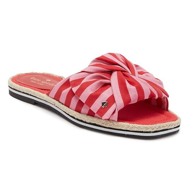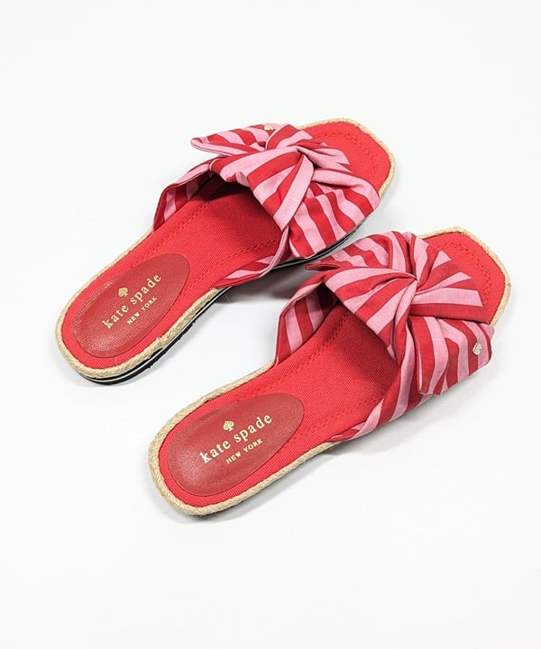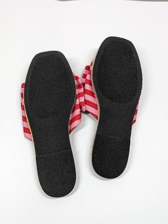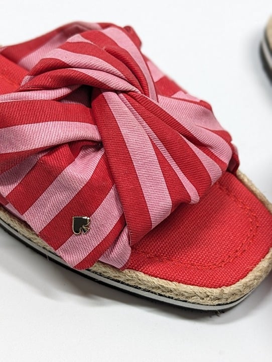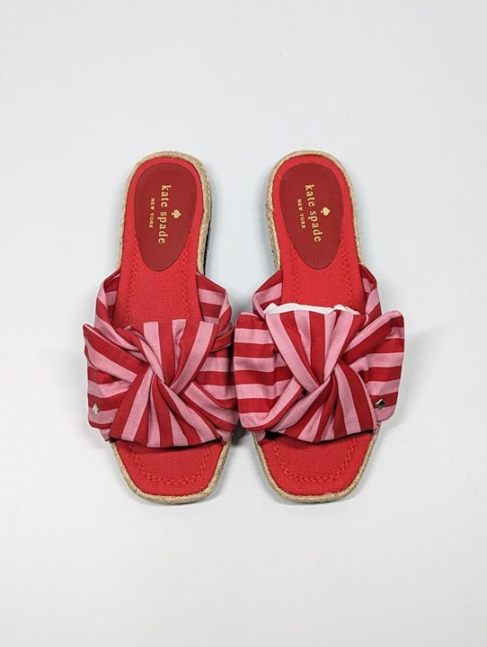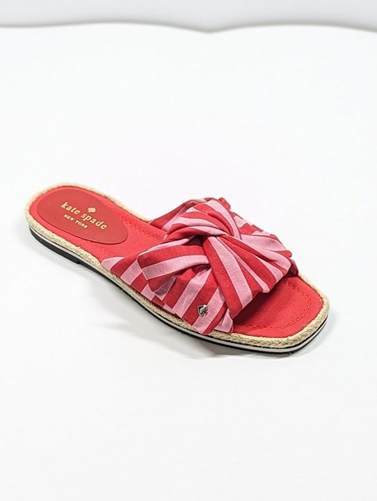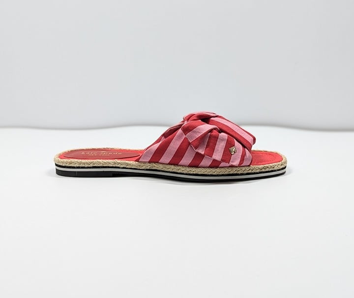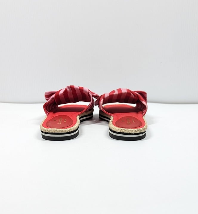 Kate Spade Women's Caliana Pink Red Striped Bow Flat Sandals Size 5.5 MSRP $138