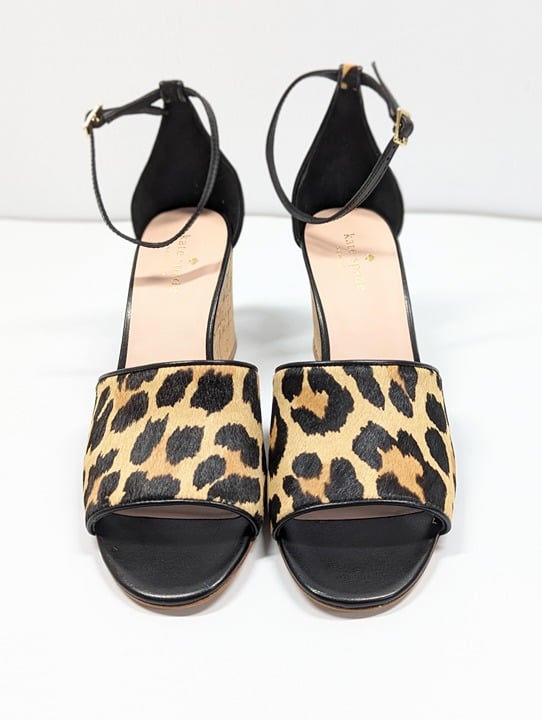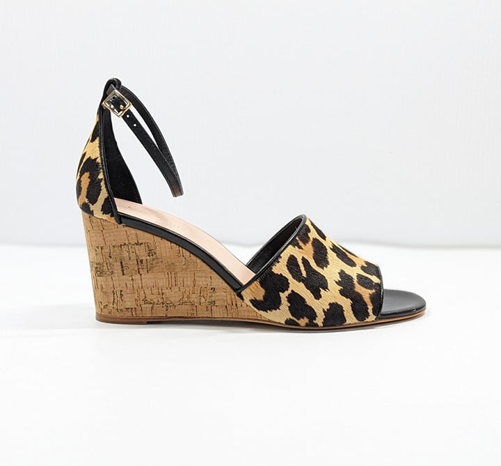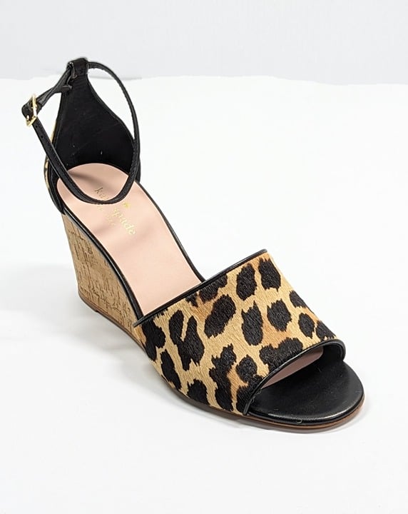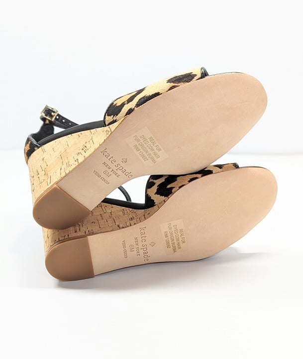 Kate Spade Women's Lonnie Leopard Calf Hair Wedge Sandals Size 6 M (MSRP $198)