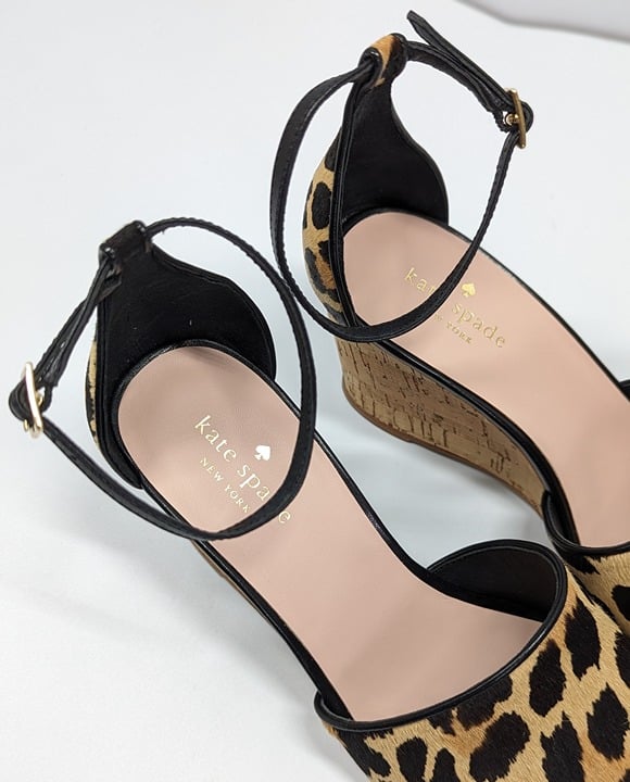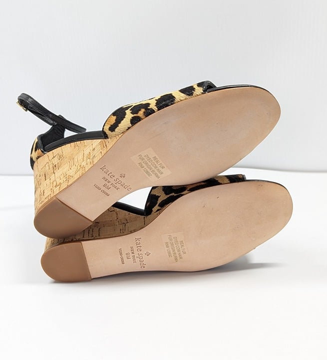 Kate Spade Women's Lonnie Leopard Calf Hair Wedge Sandals Size 9 M (MSRP $198)