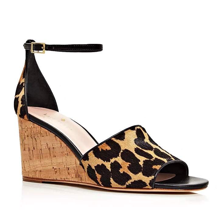 Kate Spade New York Women's Lonnie Leopard Printed Calf Hair Wedge Sandals Size 9 M