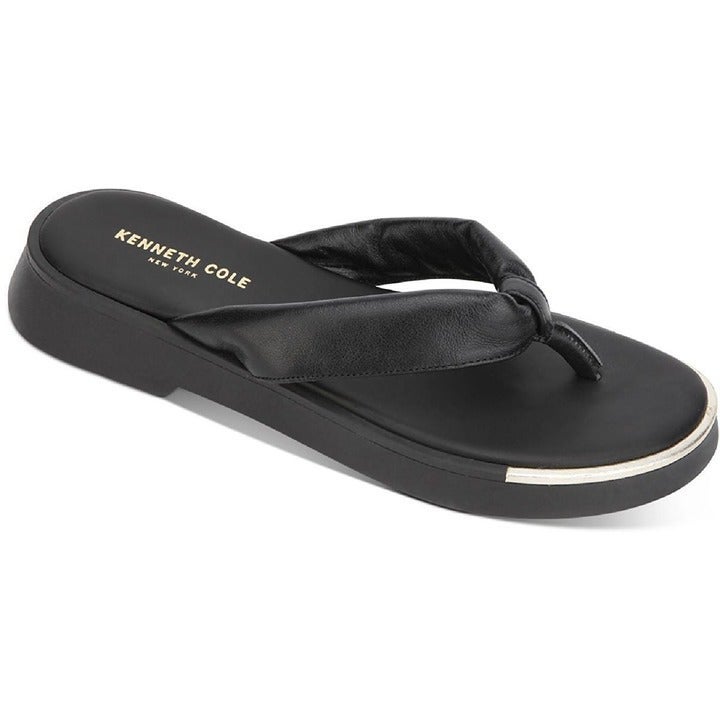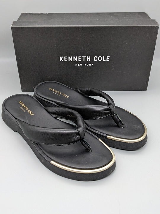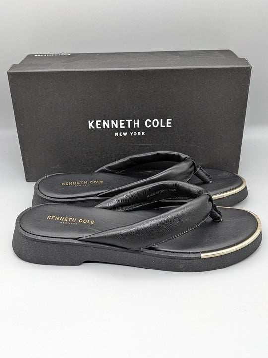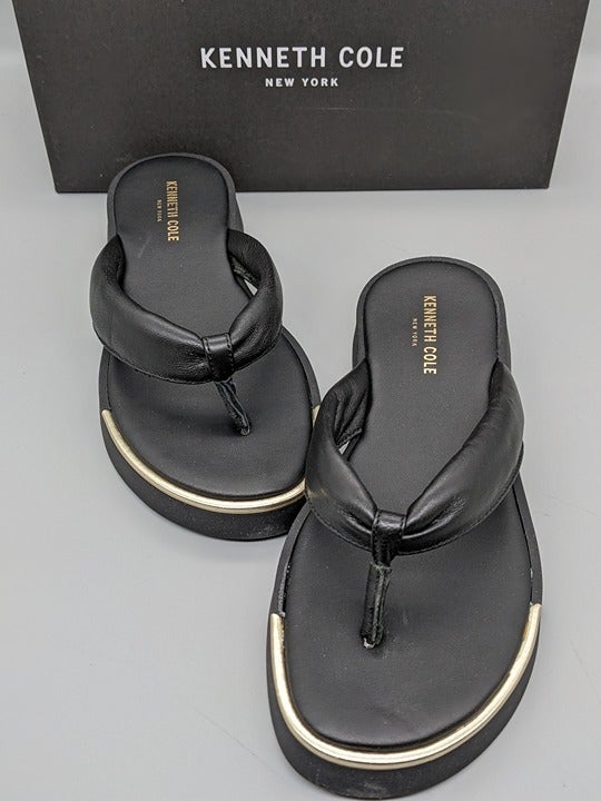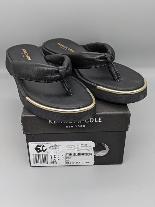 KENNETH COLE NEW YORK ATHENS TONG BLACK LEATHER FLATFORM SANDALS Size 7.5