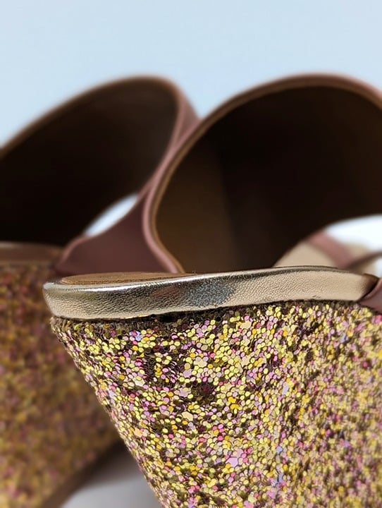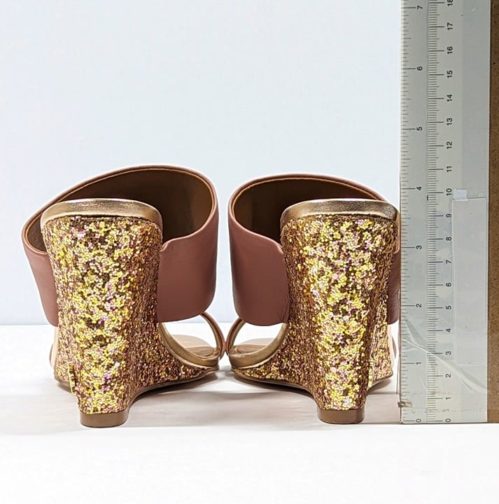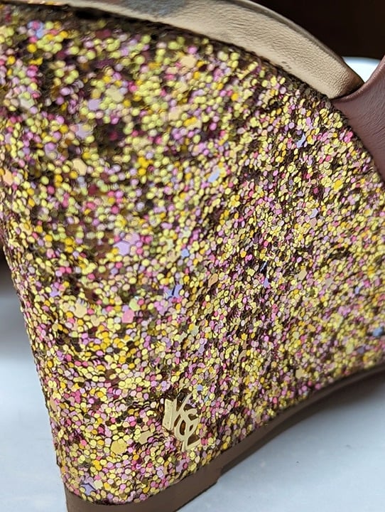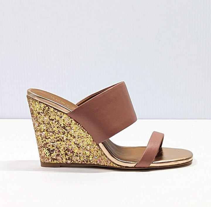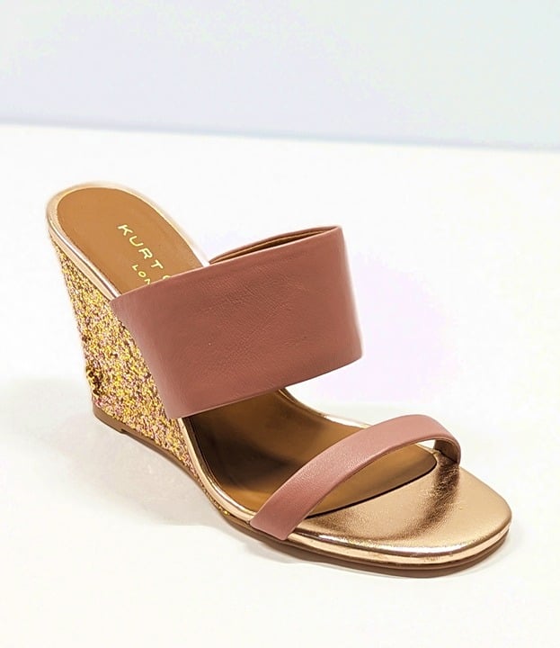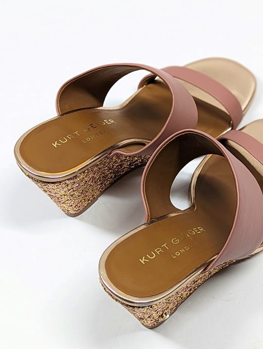 Kurt Geiger London Women's Charing Wedge Sandals Pale Pink Leather Glitter Size 37 EU / 7 US