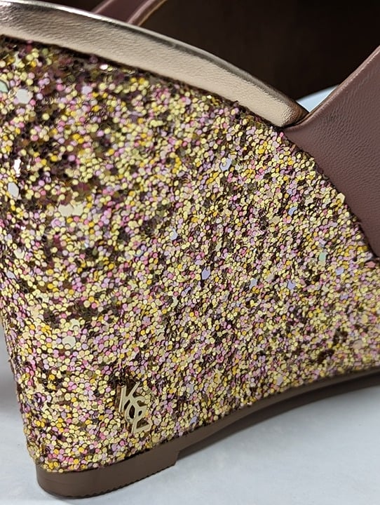Kurt Geiger London Women's Charing Wedge Sandals Pale Pink Leather Glitter Size 39 EU / 9 US