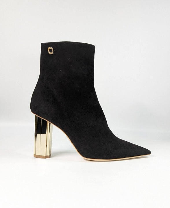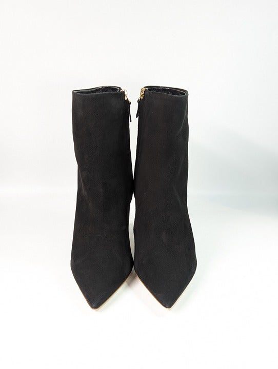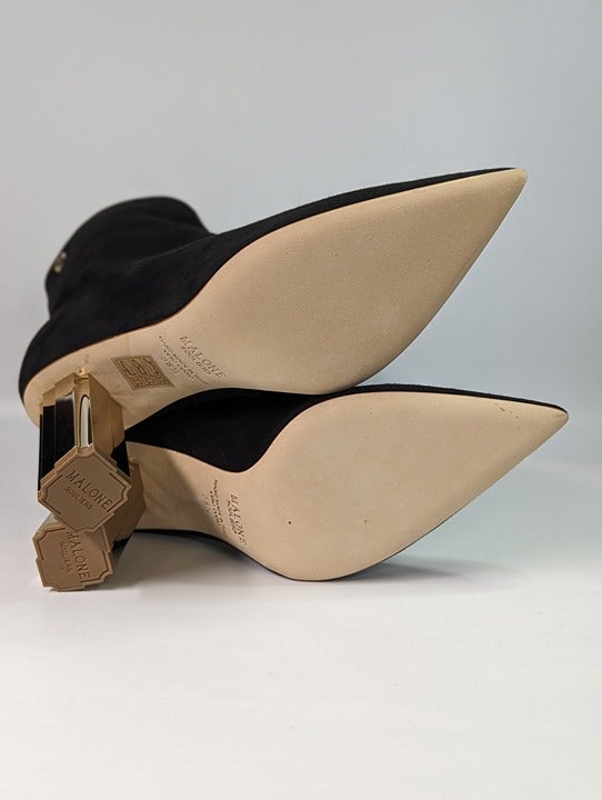 Malone Souliers Women's Laika Black Suede Pointed Toe Booties 90mm Size 38.5 EU